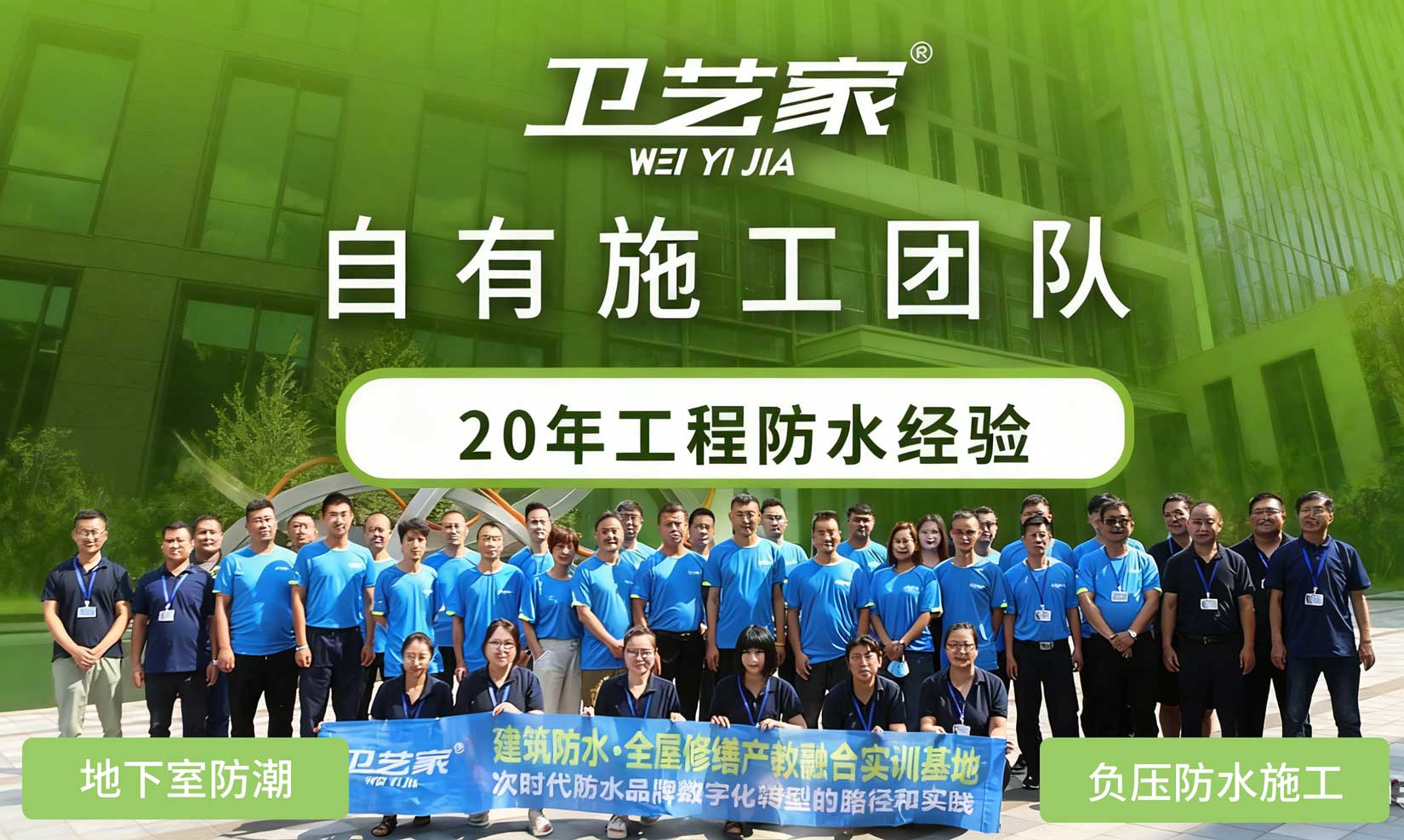 卫艺家防水,创始人专业防水服务20年,提供营口负压防水施工等专业防水工程施工,自有施工团队,20年工程防水经验。卫艺家防水凭借创始人 20 年的专业积淀和国家高新技术企业的技术实力,以负压防水技术为核心,为各类建筑渗漏难题提供系统性解决方案。作为拥有二级防水施工资质、30 余项国家专利的正规企业,卫艺家已累计完成超 8000 个防水项目,从别墅地下室负压防水工程、大型建筑屋面防水到老旧小区平改坡防水工程,用 "背水面主动防渗" 的技术突破,重新定义了防水工程的标准。